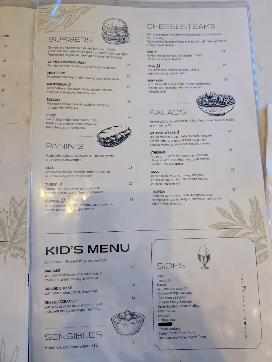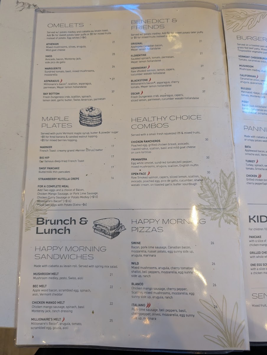 - Big Hip French Toast: This deep-fried treat stands out with its light texture and accompanying Vermont syrup for $17.00.